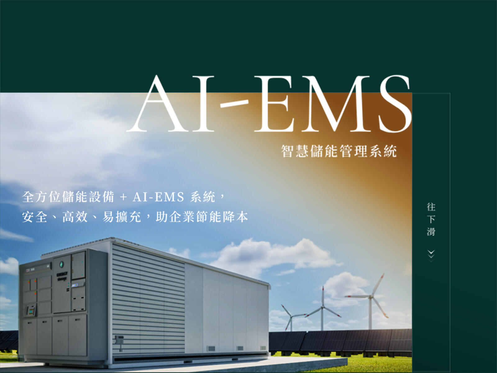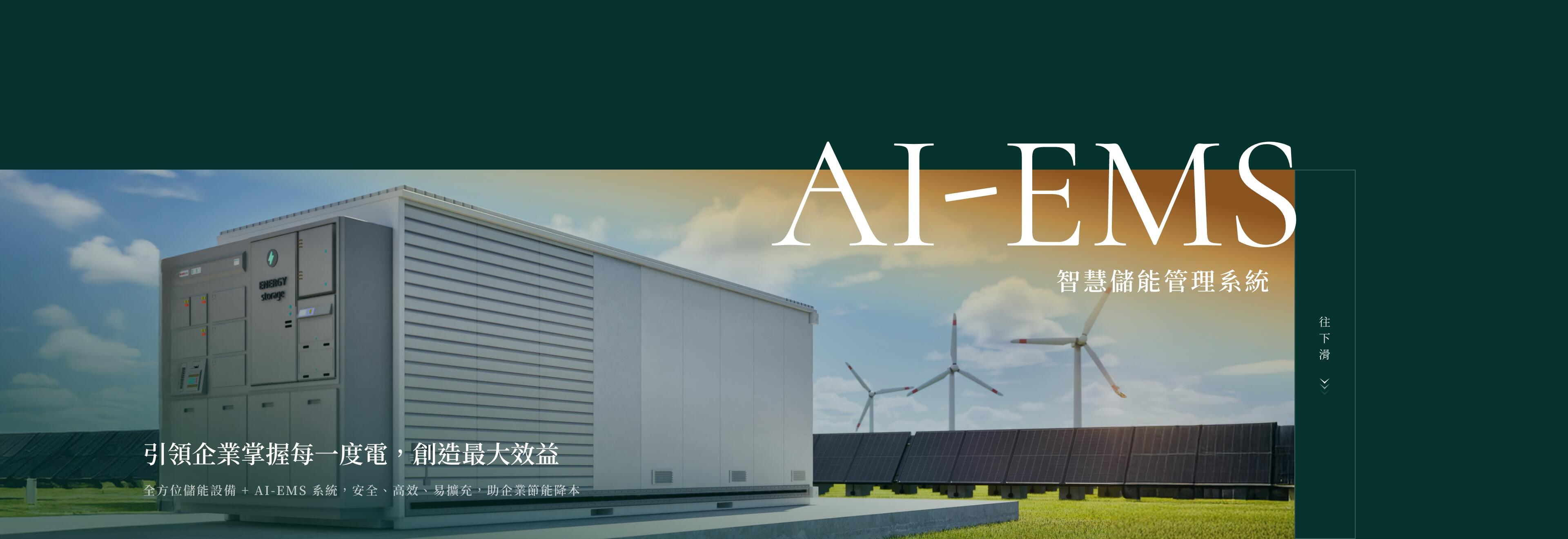儲能解法: AI-EMS 整合監控、調度、負載管理,協助企業提升能源效率與透明度。